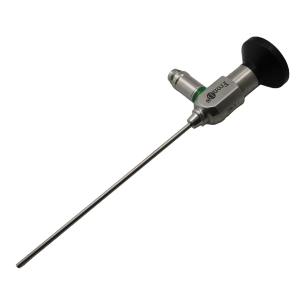 A Rigid otoscopy endoscope with a 0° straight view, designed for high-precision ear examinations. Its 2.7 mm slim diameter and 110 mm length allow safe insertion and provide wide-angle, clear imaging for diagnostic and minor ENT procedures.