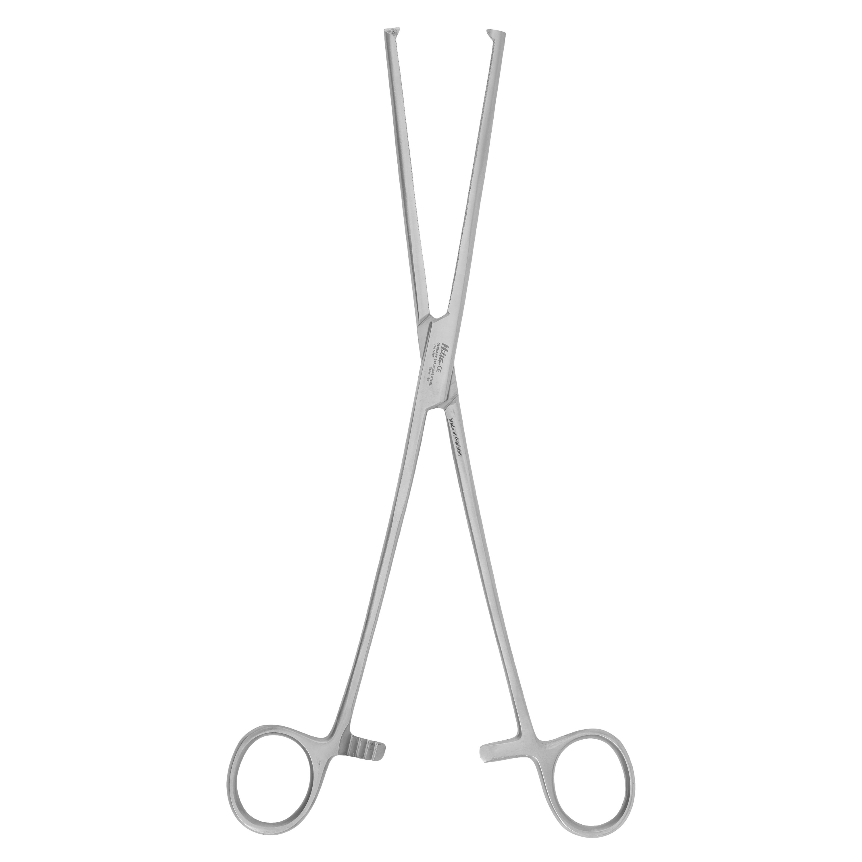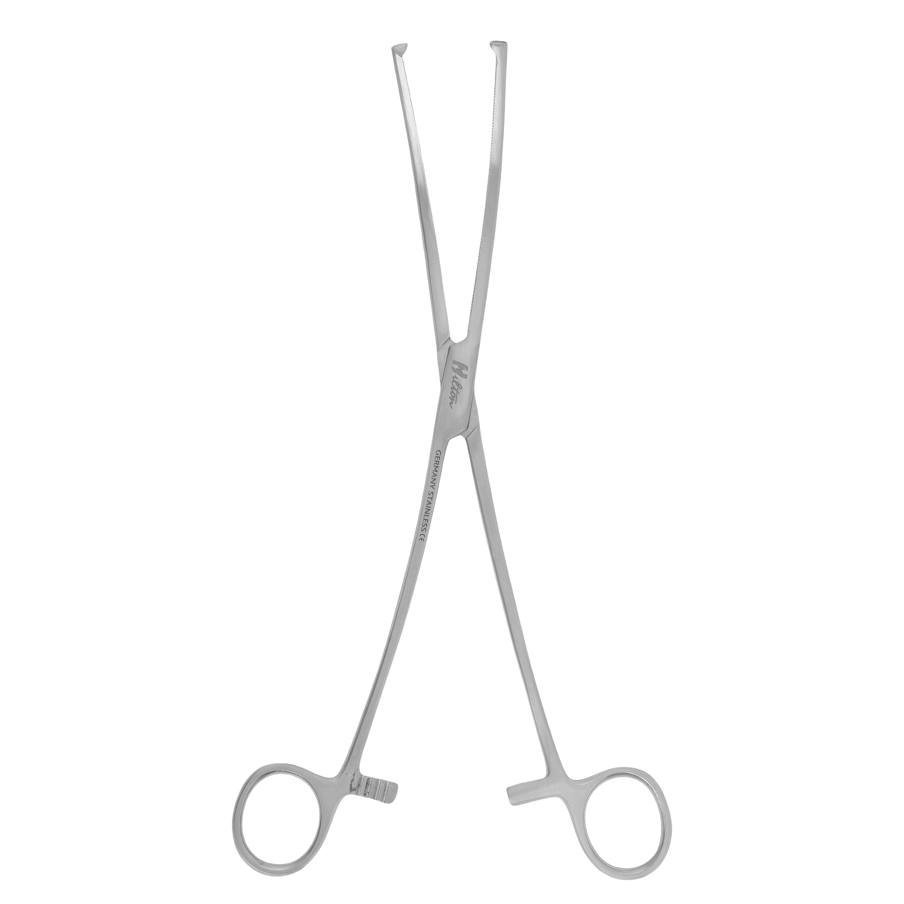 The Hilton Kocher Clamp (25 cm) is a surgical instrument designed for grasping tough tissues and securing bleeding vessels during surgical procedures. It features serrated jaws with a strong grip and a ratchet locking mechanism to hold tissues firmly. Made of high-quality stainless steel, it ensures durability, corrosion resistance, and repeated sterilization.