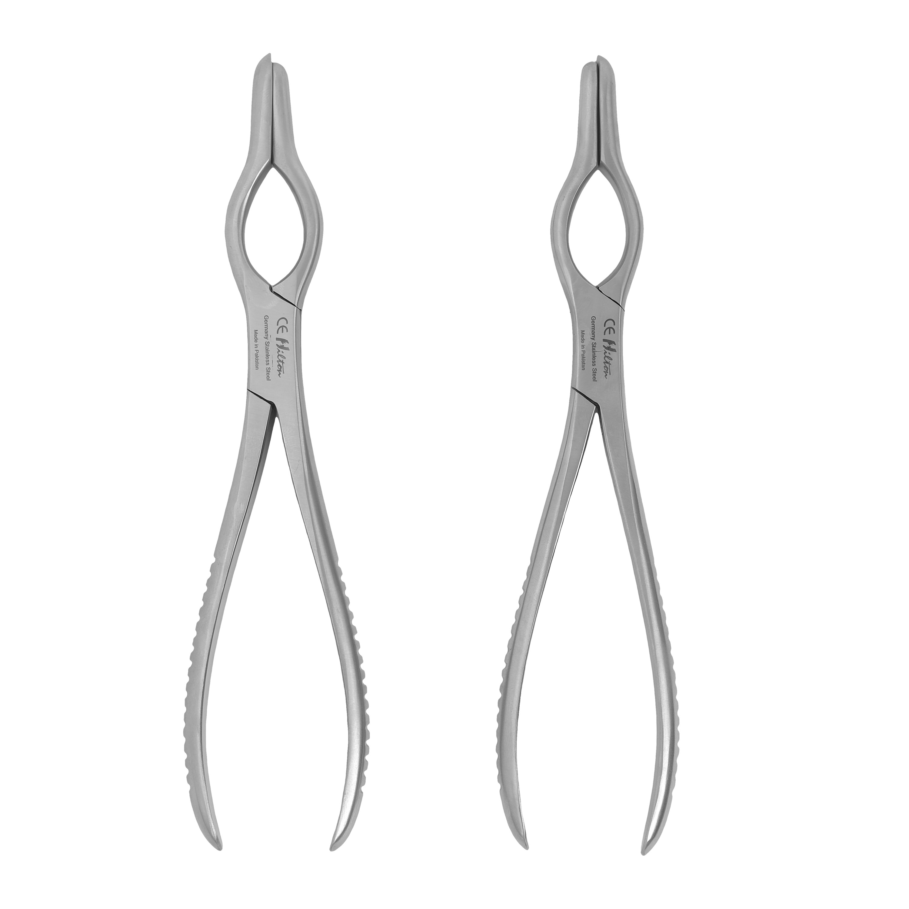 The Hilton Walsham Nasal Forceps are specialized ENT instruments designed for nasal bone manipulation and septum straightening during nasal surgery. This set includes both left and right forceps, allowing surgeons to operate efficiently on either side of the nasal cavity. Their angled jaws provide optimal access and control for delicate nasal corrections.