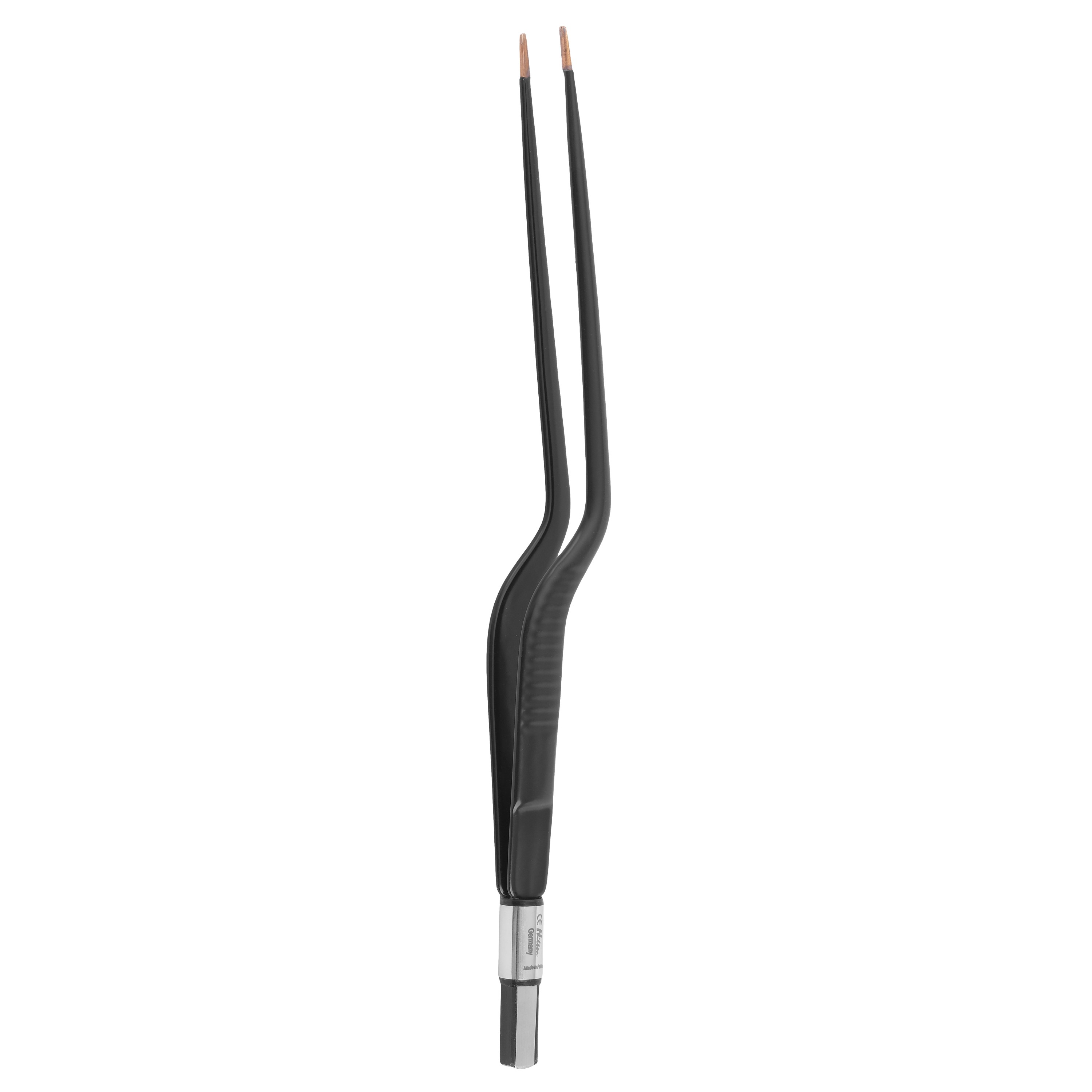 The Hilton Bipolar Forceps Crooked 20 cm is a specialized surgical instrument used in delicate procedures to control bleeding and perform coagulation with electrosurgical current. Its crooked design allows easy access to hard-to-reach areas during surgery.