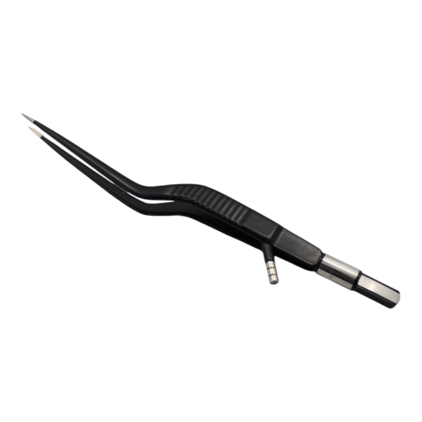 • High-quality non-sticky crooked bipolar forceps with integrated suction tube, designed for precise surgical applications