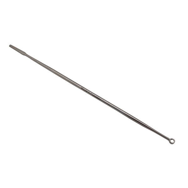 High-quality stainless steel ear probe with a ring tip, designed for safe and effective extraction of earwax or foreign bodies from the ear canal. Compact 18cm length ensures precise handling during ENT procedures
