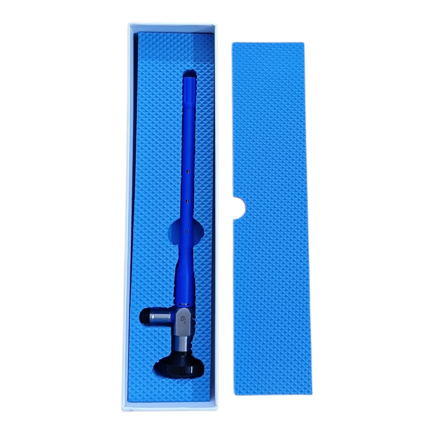 A rigid ENT laryngoscope with a 45° wide-angle view (Upward - Opposite to the direction of the light source), designed for advanced visualization in laryngeal examinations and surgeries. With its 4 mm diameter and 175 mm length, it provides sharp, high-resolution imaging for precise diagnostics and operative use.